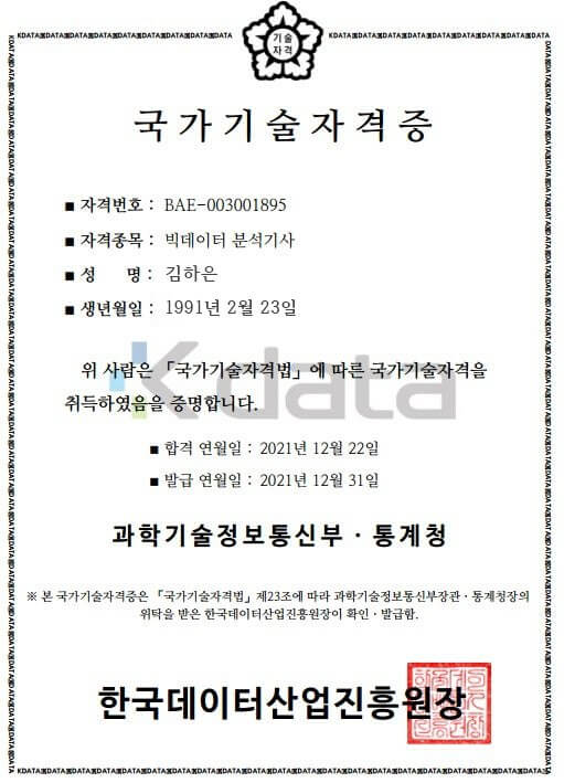 안녕하세요 빅데이터 전문가 김하은입니다.
